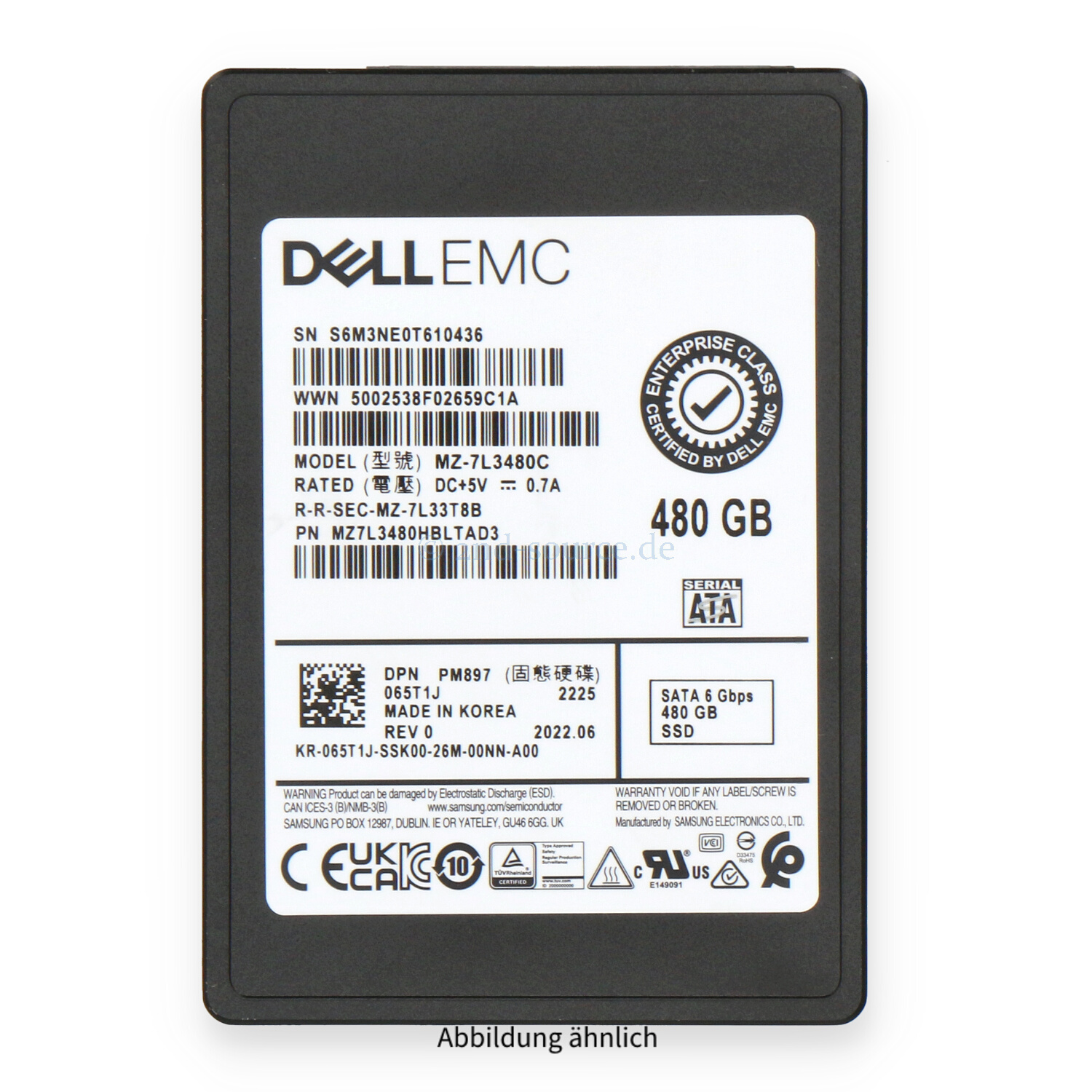 | Modell | Dell 480GB SATA 6G SFF SSD |