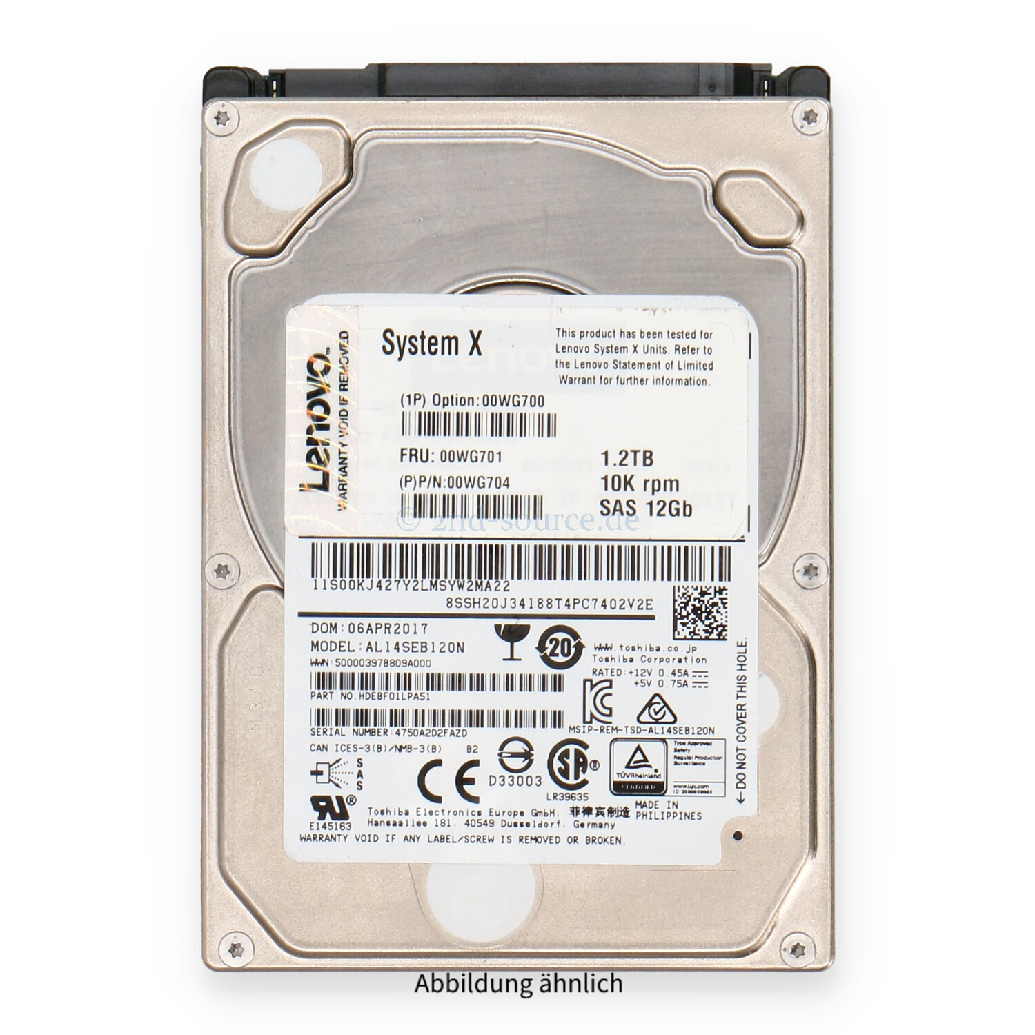 | Modell | Toshiba 1.2TB 10k SAS 12G SFF HDD |