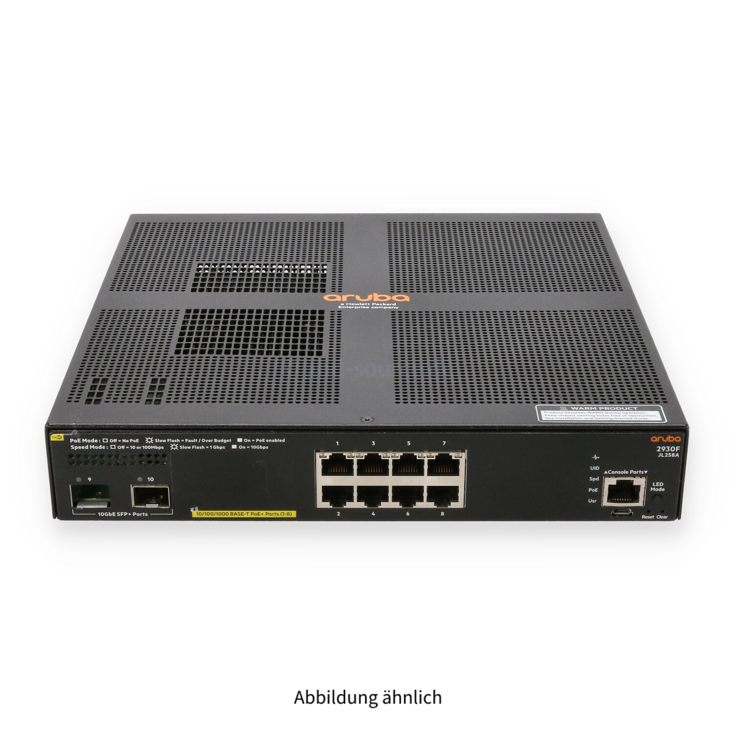 | Modell | HPE Aruba 2930F 8x RJ-45 1GbE PoE+ 1x SFP+ 10GbE Managed Switch |