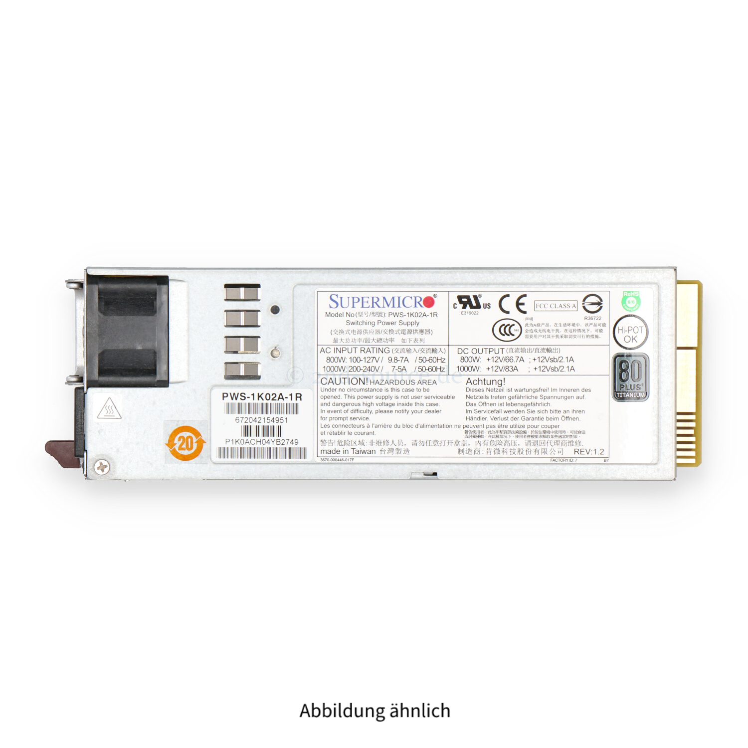 | Modell | Supermicro 1000W HotPlug Power Supply |