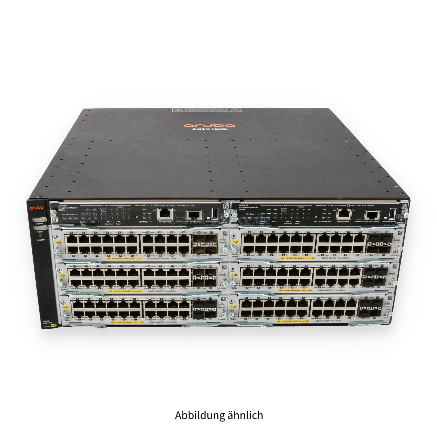 | Module | 6x HPE Aruba 20x 1000Base-T PoE+ 4x SFP+ v3 zl2 Switch Module J9990A, 2x HPE Aruba 5400R zl2 Management Module J9827A |